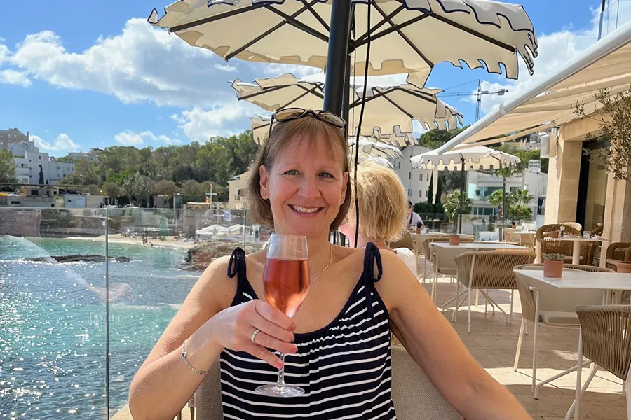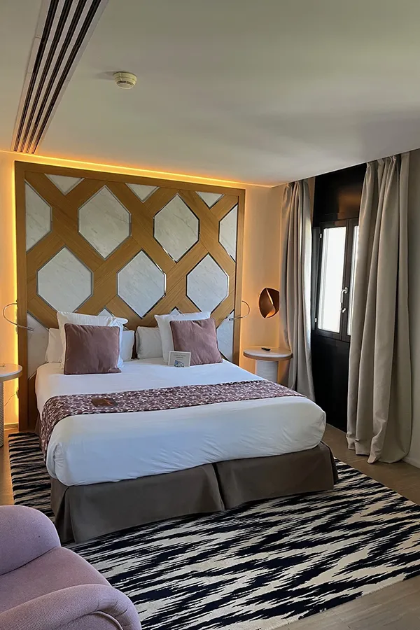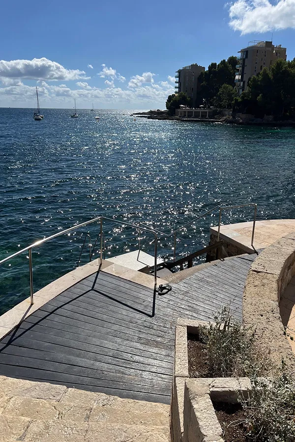 After my show round, lunch on the terrace was just perfect – impeccable service, great food and stunning views over the pool and Mediterranean. The October sunshine was glorious, and many guests were taking advantage of the steps directly into the sea for a refreshing swim. I opted for a sunbed and cocktail instead!